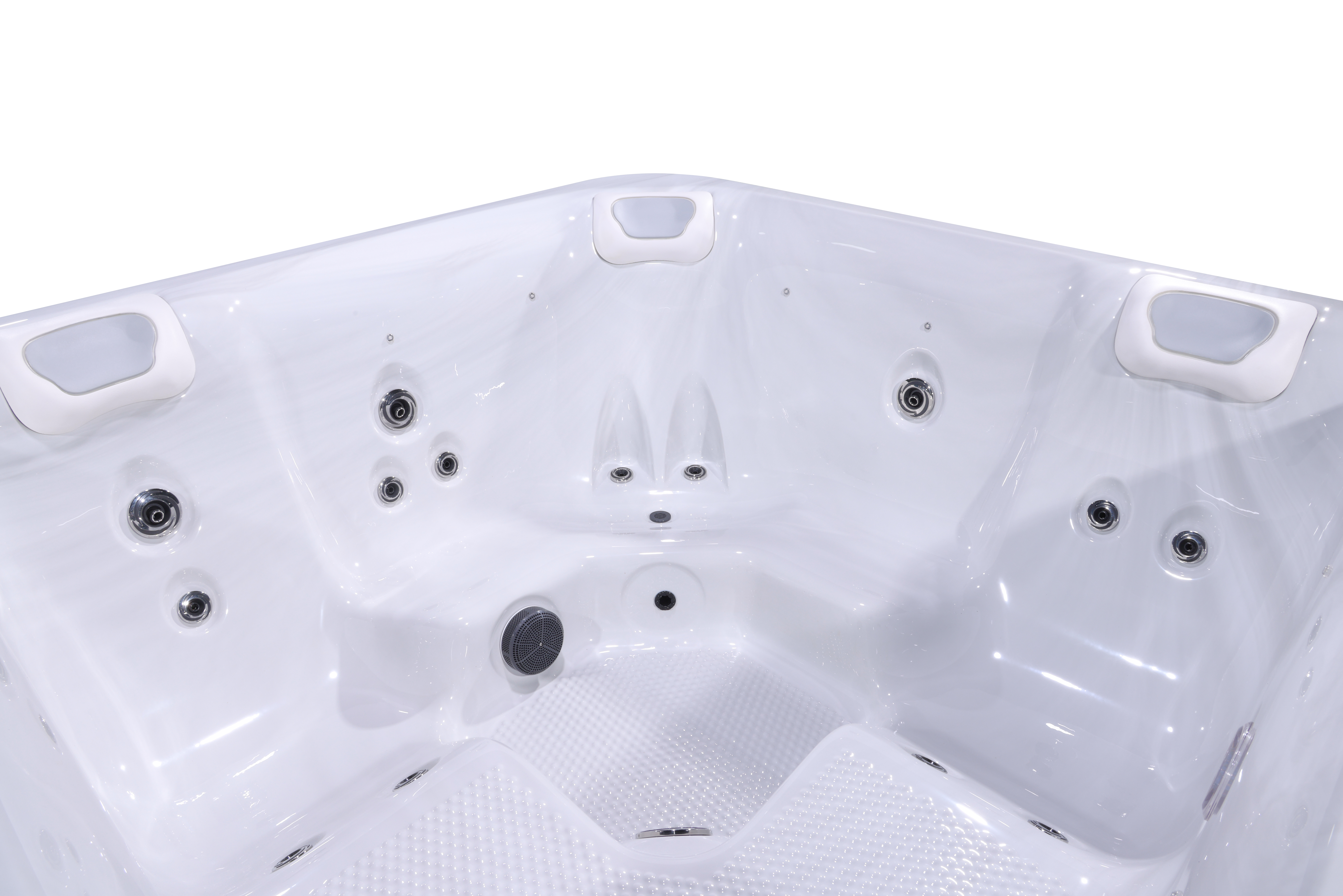 Khel предлагает продуманную систему массажа с 16 воздушно-водяными форсунками, которые обеспечивают эффективное расслабление ключевых групп мышц. Эргономичная конструкция с тремя подголовниками создает комфортные условия для отдыха компании до пяти человек.