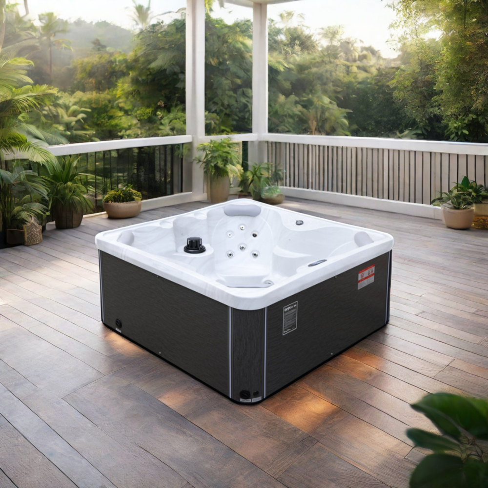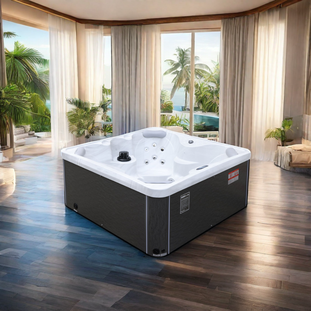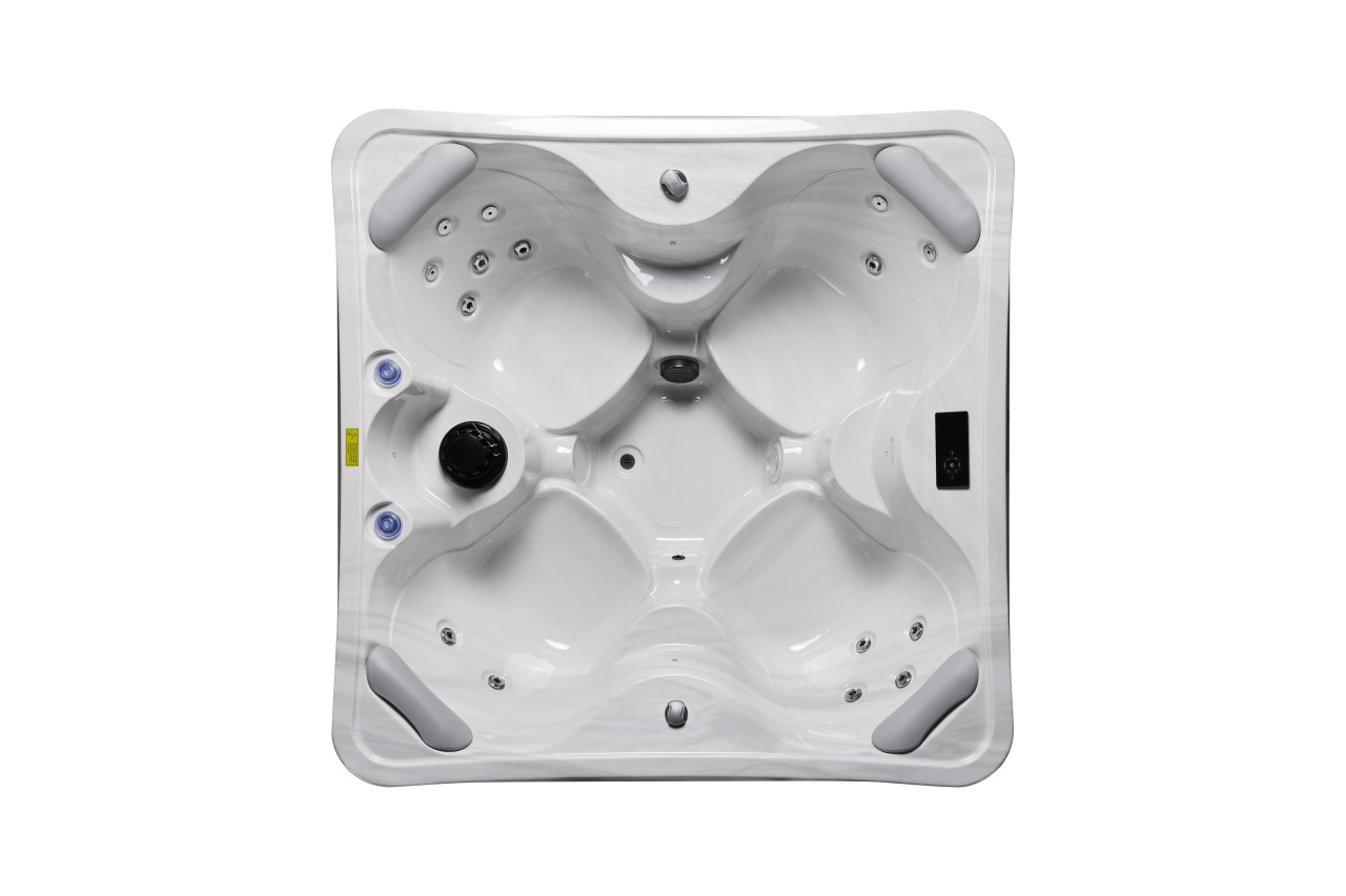 NordicSpa Nyerd с размером чаши 1,8 x 1,8 м идеально подходит для установки как в помещении, так и на улице. Компактная квадратная форма с четырьмя эргономичными подголовниками комфортно вмещает до четырех человек, создавая уютную атмосферу для отдыха и общения.