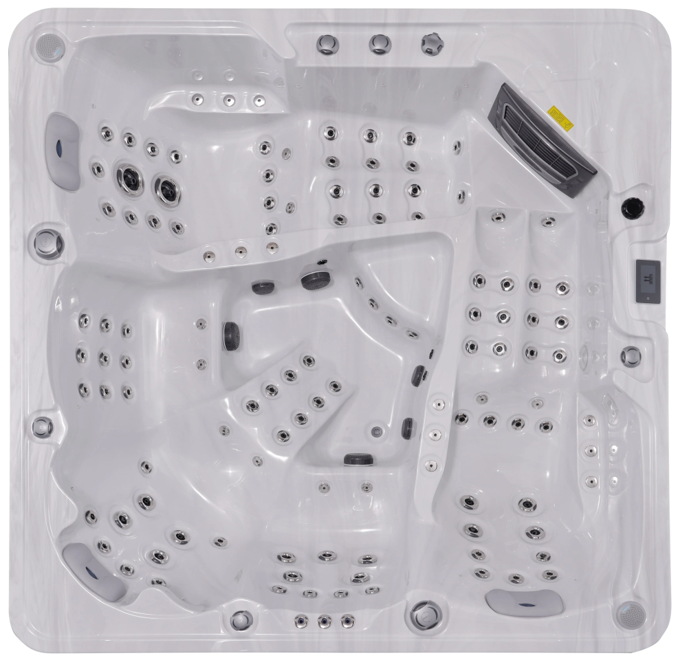 NordicSpa Tyur с размером чаши 2,25 x 2,25 м идеально подходит для установки как в помещении, так и на улице. Просторная квадратная чаша с тремя эргономичными подголовниками комфортно вмещает до пяти человек, создавая королевские условия для полноценного отдыха и общения.