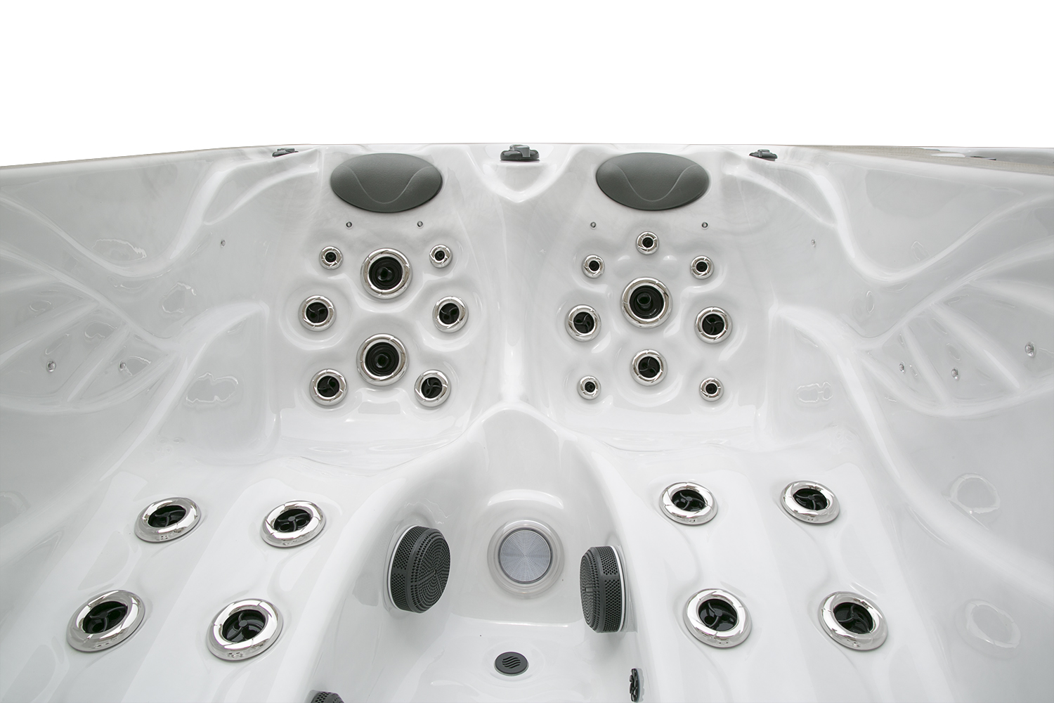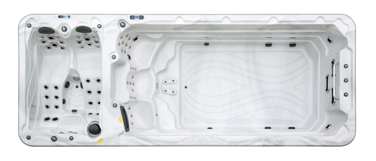 Два гидромассажных насоса по 1,5 кВт в сочетании с 76 форсунками обеспечивают интенсивный массаж и эффективную гидродинамику в спа-зоне. Мощный водяной насос на 2,9 кВт и форсунки противотока нового поколения создают идеальные условия для занятий плаванием и тренировок на воде в основной части бассейна.