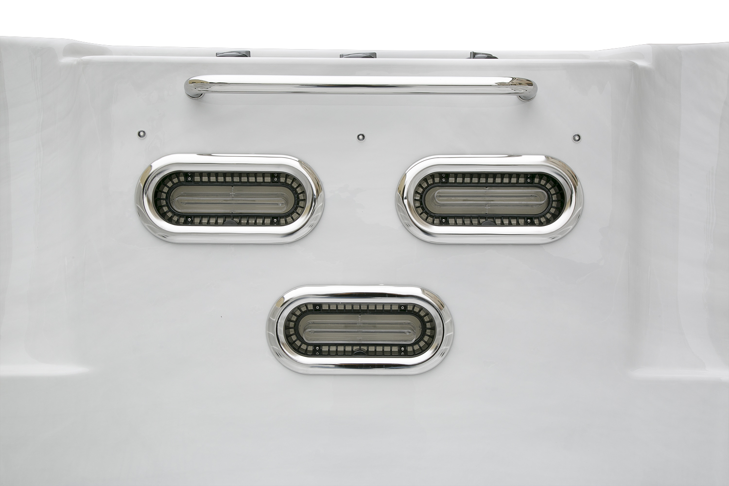 Хорошо продуманная система освещения превращает вечерний отдых в эстетическое наслаждение. Многоцветная подводная подсветка Northern Lights, дополненная изящной подсветкой ватерлинии, создает сложную игру света на воде, способствующую глубокой релаксации и визуальной гармонии.